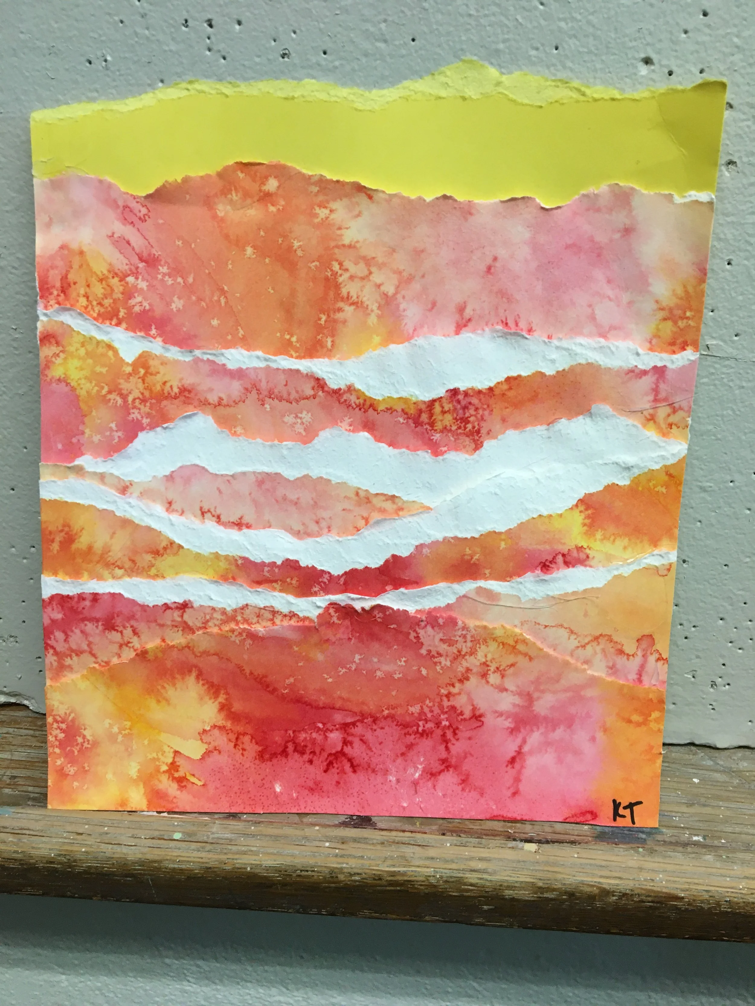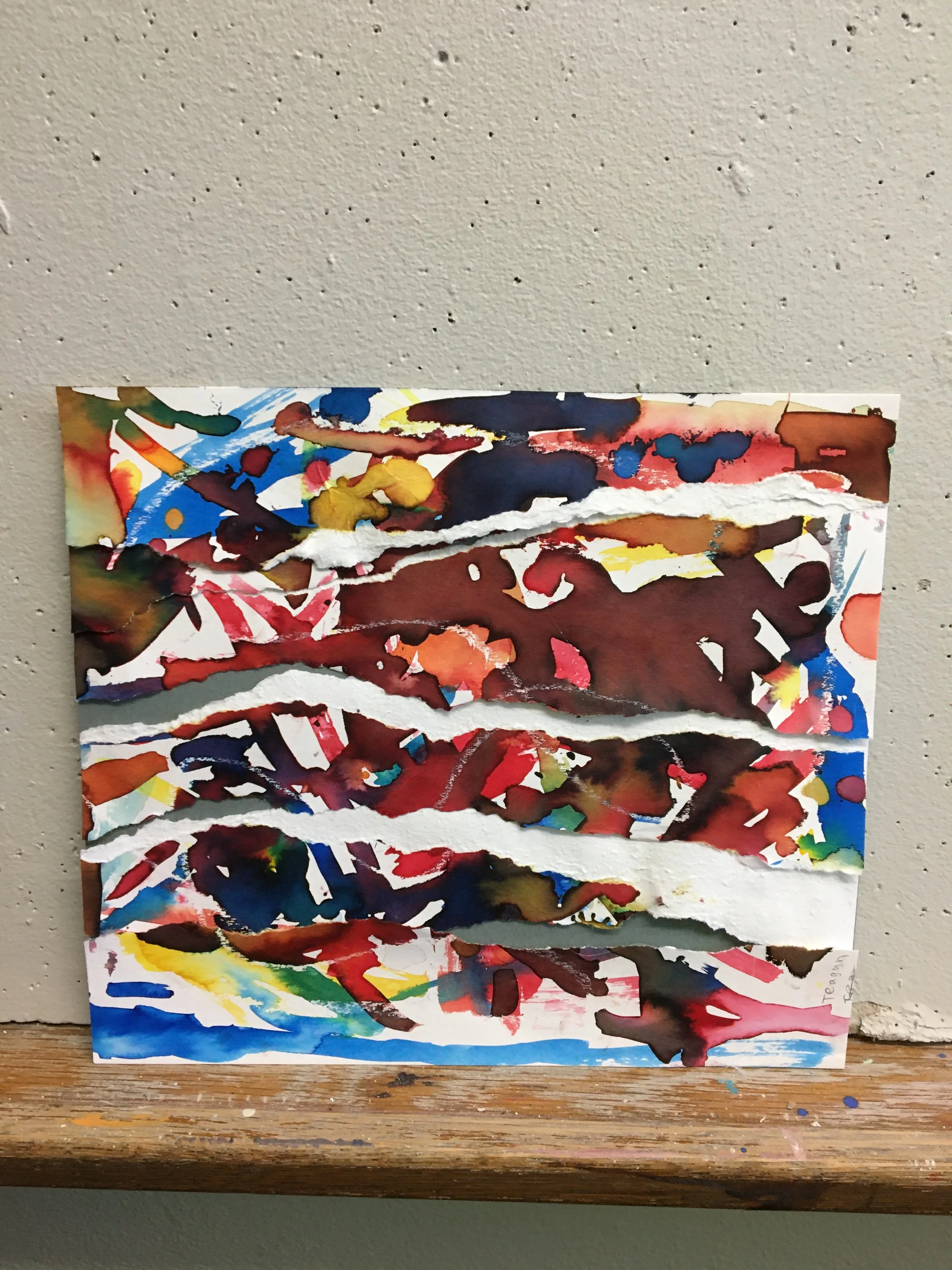Using any of the watercolor techniques described above, you will create an abstract watercolor painting. After applying your watercolors, don’t be afraid to tear into your project! It is a part of the process.