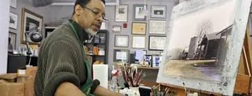 Dean Mitchell is an African American artist, born in Pittsburgh, Pennsylvania in 1957. He grew up in Florida, and was raised by his grandmother. A graduate of the Columbus College of Art and Design, his watercolors depict the poverty of his youth. If you study these paintings you will see, the old dilapidated buildings are painted with respect and care, and his human subjects are honored, have dignity and inner strength. He knows his tools, “watercolors” in depth. “So often a lot of people when they first start using watercolor, they're very extremely careful. If you really want the work to have some emotion and some meat to it, you have to really let it go.” What can you do when you are painting, to “let it go?”