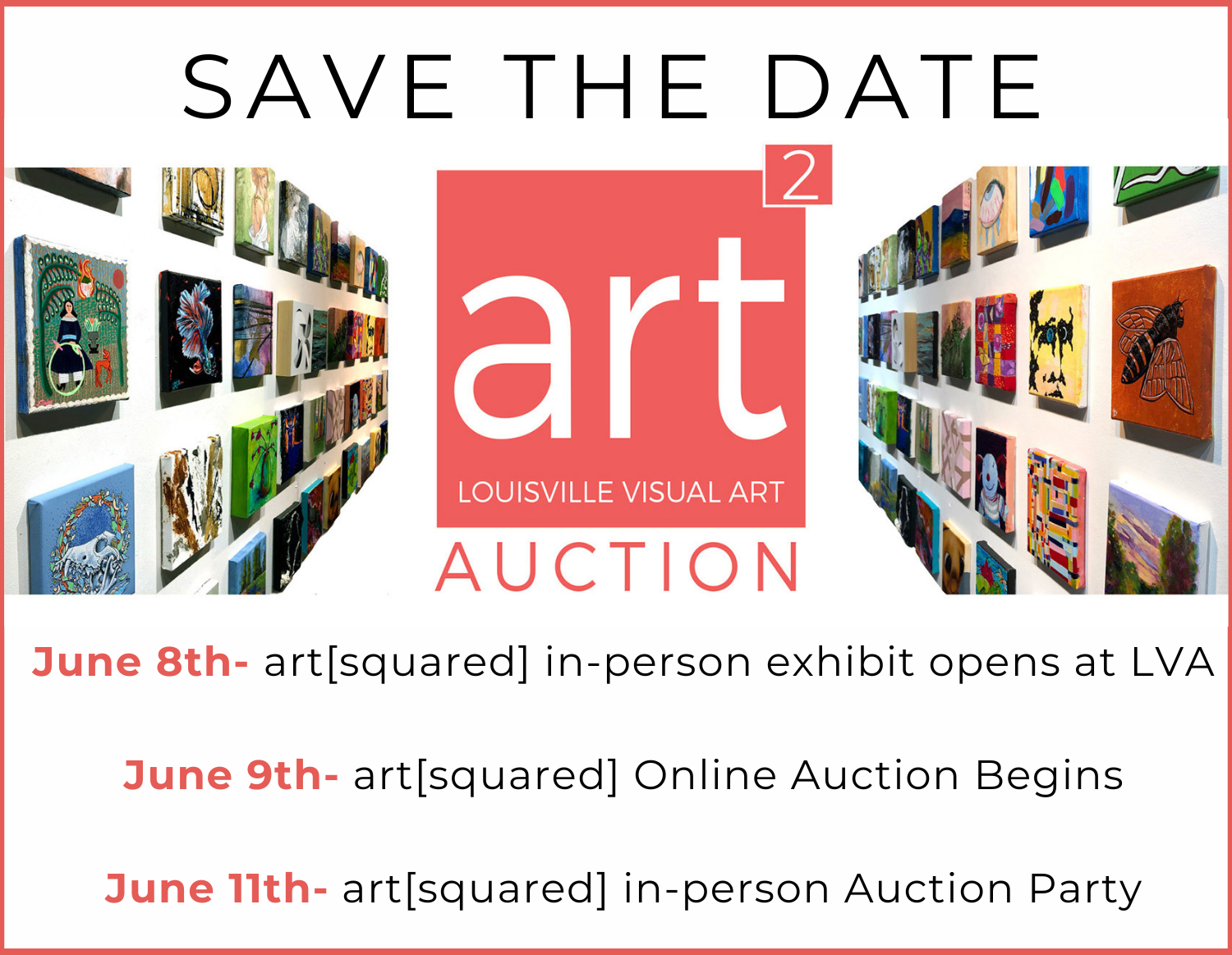 We’re thrilled to invite you to LVA’s 13th annual art[squared] online auction, showcasing 12" x 12" works from 30 local, established artists and 8" x 8" pieces from over 100 additional artists from across Louisville. It’s your chance to support local art while collecting original work! Auction Party ticket information is COMING SOON! |